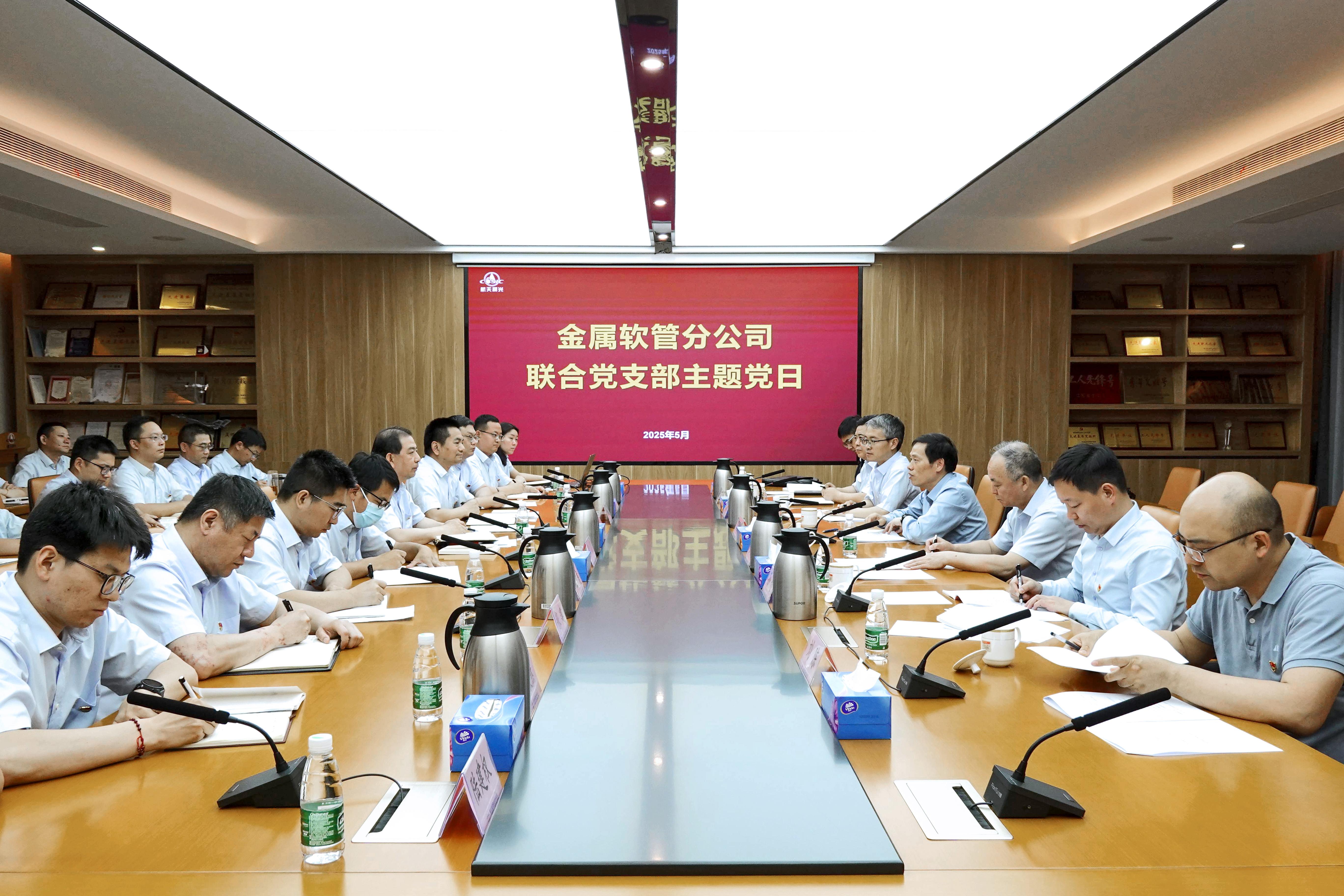 近日,集團公司黨組成員、副總經理羅喜勝到航天晨光金屬軟管分公司聯合黨支部參加深入貫徹中央八項規定精神學習教育主題黨日活動,集團公司總部有關部門領導,公司黨委書記趙康,黨委委員、副總經理楊樹東一同參加。